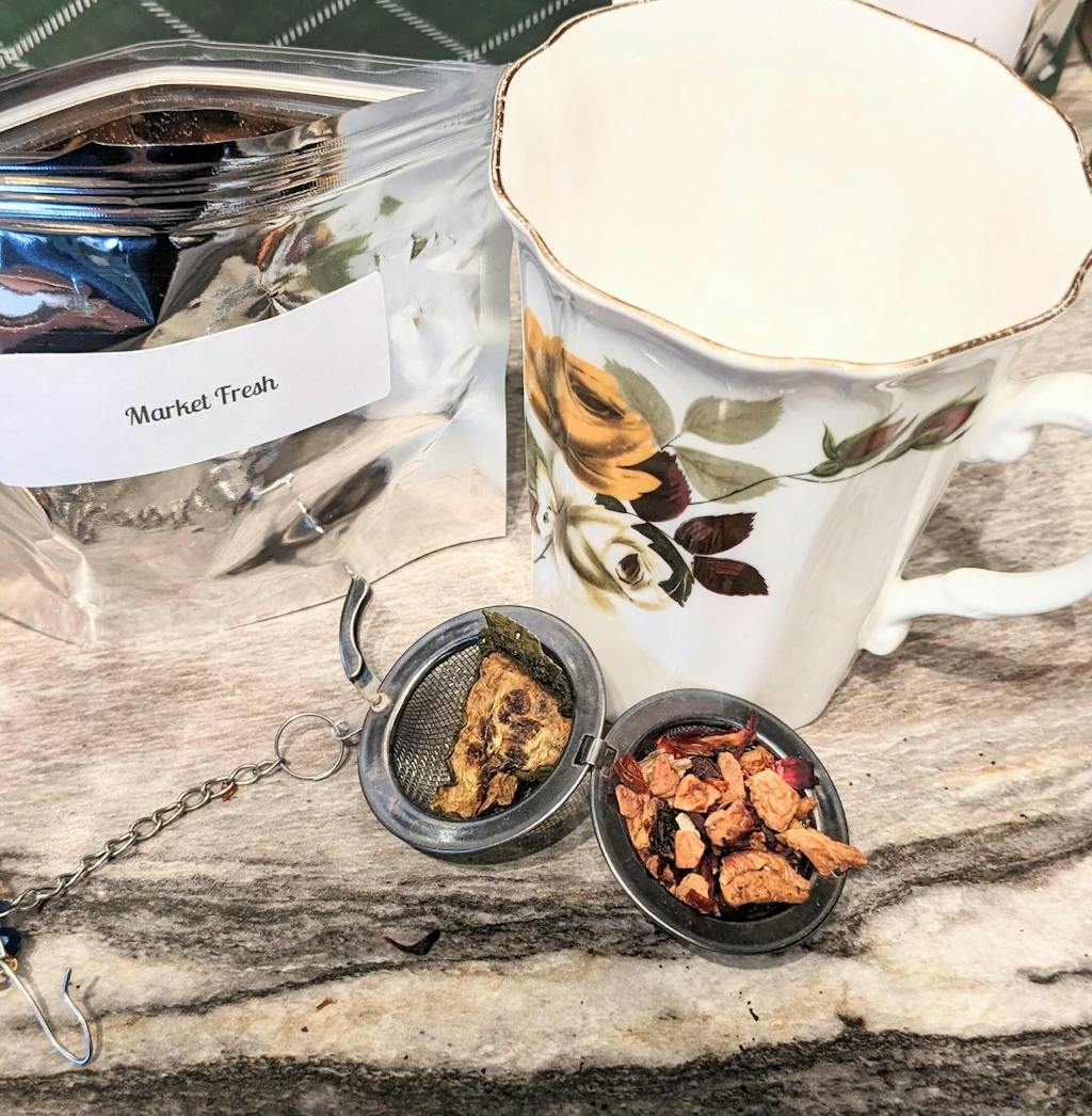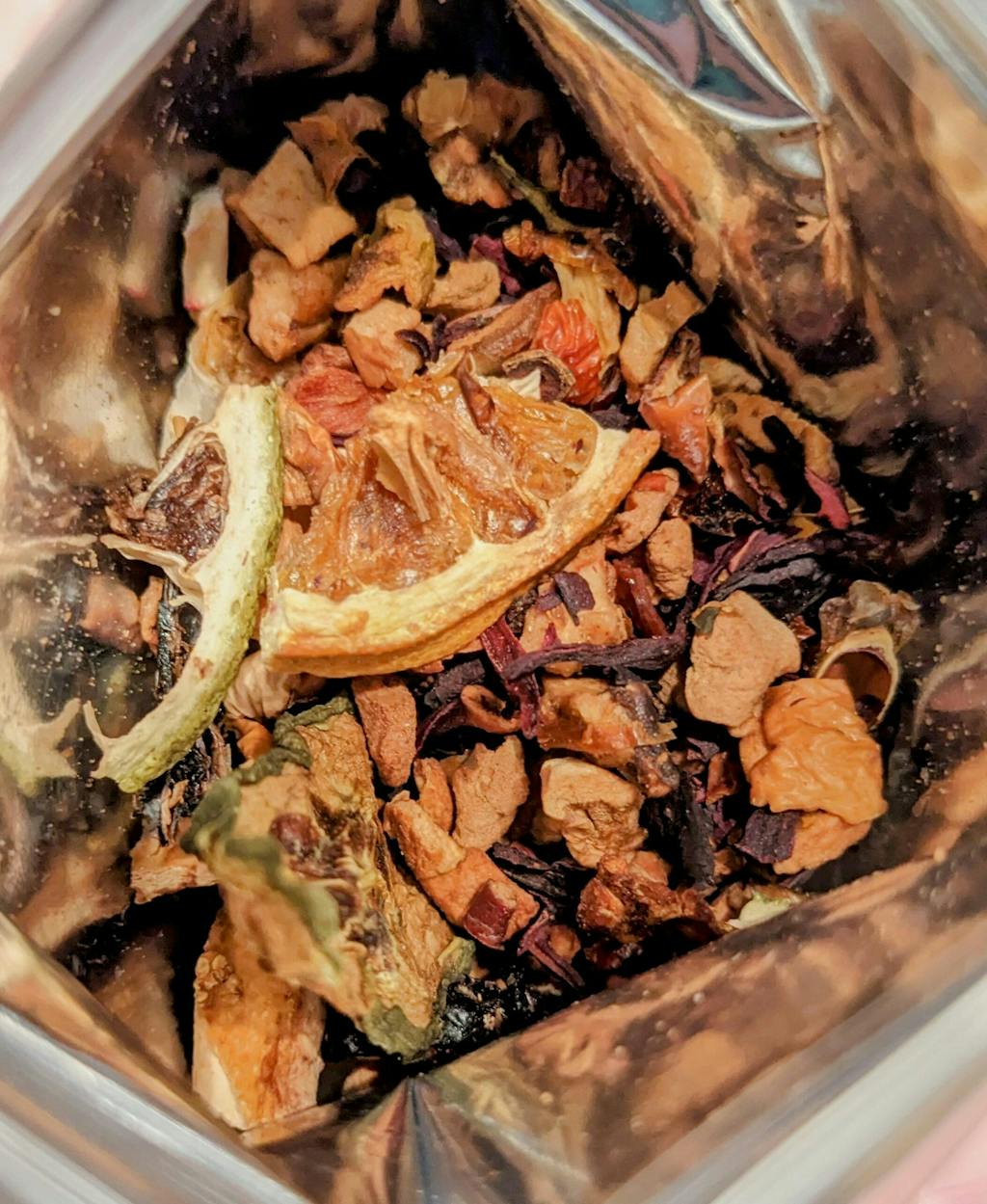 Brisk, crisp, sweet and fruity, a juicy mosaic brimming with tart summer fruit, rounded by fall harvest vegetable flavors. A market basket in a cup.Luxury Ingredients: Apple, Hibiscus and Rosehip pieces, Cucumber, Lemon, Lime and Orange slices, Tomato pieces, Natural flavours (organic compliant)Small Batch Blended and Packed in: CanadaTea(s) From: Turkey / Chile / China / EgyptRegion(s): Anatolya / Patagonia / Shandong / Nile Delta River + FayoumAntioxidant Level: LowCaffeine Content: None - Caffeine Free Herb and Fruit